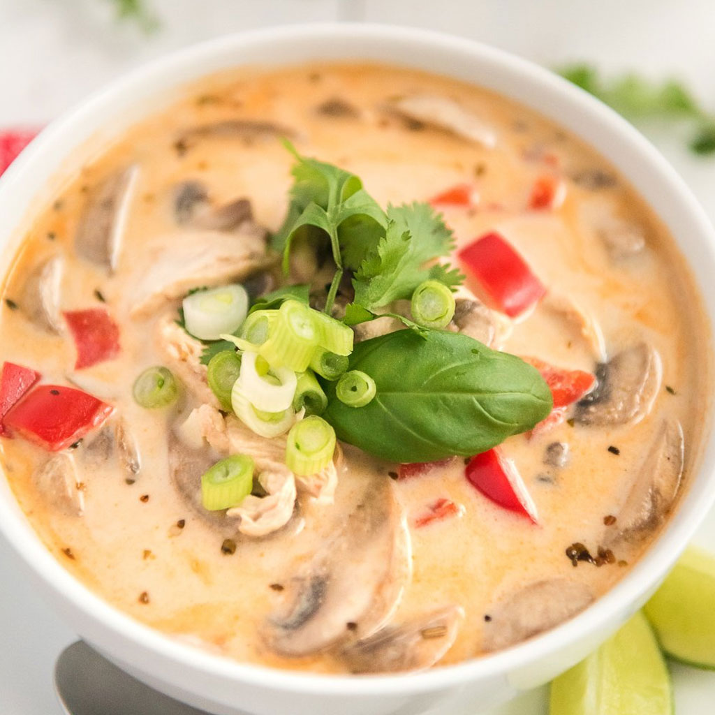 Mild spicy coconut milk soup with chicken, lemmongrass, kaffir lime leaves, galangal.