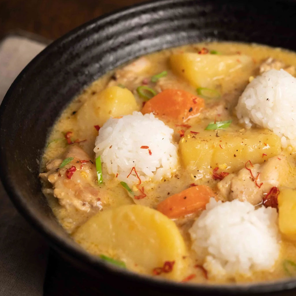 Popular curry since 1988. Chicken breast stew in yellow curry, potatoes, carrots.